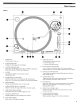 Troubleshooting Turntable operates but emits no sound or not enough sound. 1. The stylus guard is still in place. Remove the stylus guard. 2. The tone arm is in the lift position. Lower the tone arm. 3. Mixer/amplifier (system) controls are set incorrectly: wrong input selected, tape monitor on, speakers switched off, etc. Verify proper control settings. Record sounds too fast or too slow. 1. Turntable is set for wrong speed.