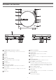Part names and functions 5 5 1 2 6 7 3 8 4 9 10 AT-LP60XUSB 11 AT-LP60XUSB 12 13 14 15 16 17 18 11 Platter speed button Select the platter speed (33-1/3 or 45 RPM). 1 45 RPM adapter (shown in receptacle) Adapts 7" records with large center holes to fit center spindle. 12 START button Spins the platter and moves the tonearm. 2 Platter 13 STOP button Returns the tonearm to its original position and stops the platter.
