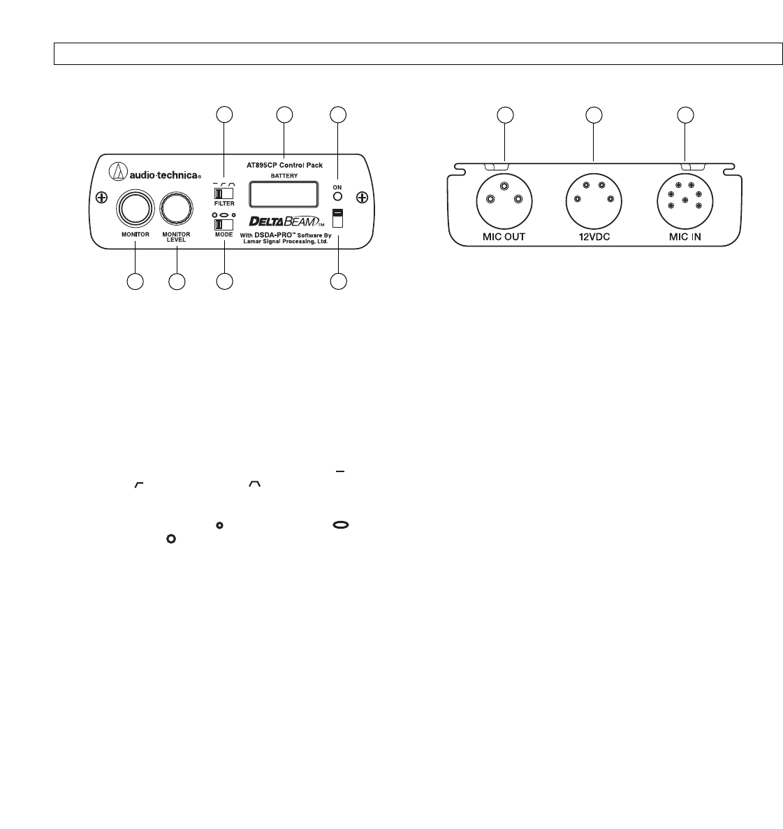 10. MIC INPUT JACK: 7-pin XLRM-type connector accepts