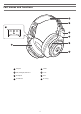 Part names and functions 2 1 3 4 5 6 7 1 Power switch Turns the power on and off. 2 Connector jack for detachable microphone Use to connect the included detachable microphone. 3 Microphone monitor button Use to monitor your voice. 4 Battery jack Use to connect the included USB charging cable and charge the product. 5 Volume/surround sound selector switch Used to adjust the volume and turn virtual surround playback on and off 6 Mute switch Turns the microphone mute on and off.