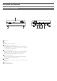 Part names and functions Top view diagram 16 16 15 1 2 3 14 13 4 5 12 6 11 7 8 1 9 45-RPM adapter (shown in receptacle) 9 Adapts 7" records with large center holes to fixed center spindle. 2 10 Quartz button Operate in conjunction with stroboscopic light located under the power dial to provide visual indication of accurate platter speeds. Spindle 4 Platter Turns the pitch function on and off.