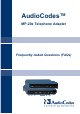 AudioCodes Customer Support Notice This document provides Frequently Asked Questions (FAQ’s) for AudioCodes MP-20x Telephone Adapter. Information contained in this document is believed to be accurate and reliable at the printing. However, due to ongoing product improvements and revisions, AudioCodes guarantee the accuracy of printed material after the Date Published nor can it responsibility for errors or omissions. Updates to this document and other documents viewed by registered customers at http://www.