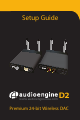 Contents D2 setup guide Introduction Page 3 Package Contents Page 3 Cleaning Page 4 Features Page 4 Overview Page 4 Quick Setup Page 6 Pairing Page 8 Troubleshooting Page 8 Specifications Page 9 Contact Us Page 10 About Audioengine Page 10 1