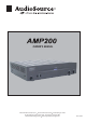 Source Switching Amplifier Congratulations on your purchase of the AudioSource AMP200. Please take a few moments to read this entire manual, and be sure to retain this document for future reference. Please read and observe all safety instructions detailed on page two (2). Using the Controls / Front Panel Power The front panel switch will manually switch the AMP200 on or off. A blue LED behind the faceplate lens indicates its power status.
