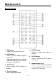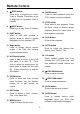 Remote Control Remote Control 1. PWR button Press to turn the unit ON or OFF. 5. ENTER button Press to confirm settings. 2. INFO button Press to display detailed playback information. Keep pressing the button to display additional information or to turn the information display OFF. the items or 6. SETUP button Press to access the DVD player’s setup menu. 7. Number buttons (0-9) Press to select Password Numbers or go to a specific Track or Time on a disc. (GOTO Function) 3.