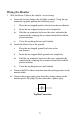 Wiring the Monitor 1. Wire the Power Cable to the vehicle’s reverse lamp. a) Locate the reverse lamp in the tail light assembly. Using the tap connector supplied, perform the following steps: i. Place the un-stripped positive lead wire on the run channel. ii. Insert the un-stripped red power wire completely. iii. Fold the tap connector back over the wires and make the connection by crimping the u-contact down flush with the plastic insulator. iv. Close the top hinged cover until latched.