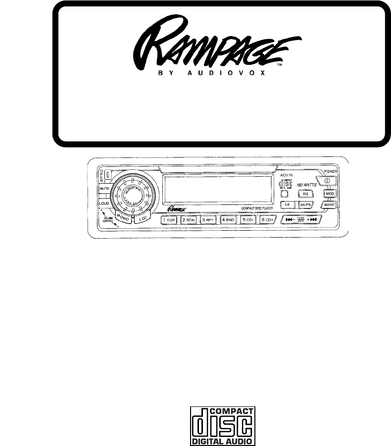 CD CH A NGER CONTR OL S CHA CONTROL OLS CD CH A NGER CONTR OL S CHA CONTROL OLS Built into this radio are controls to operate an optional CD changer. Please check with your Rampage/Audiovox car stereo specialist or call 1-800-645-4994 for recommendations of the models that will work with this radio. Adjustment of the audio functions (volume, tone, balance, and fader) for the CD changer operate in the same manner as they do for radio play.