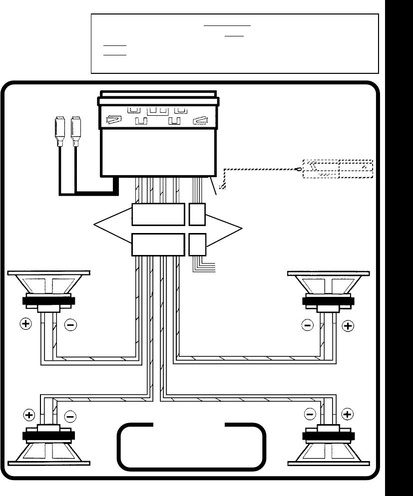 NEVER GROUND NEGATIVE SPEAKER LEADS TO CHASSIS GROUND.