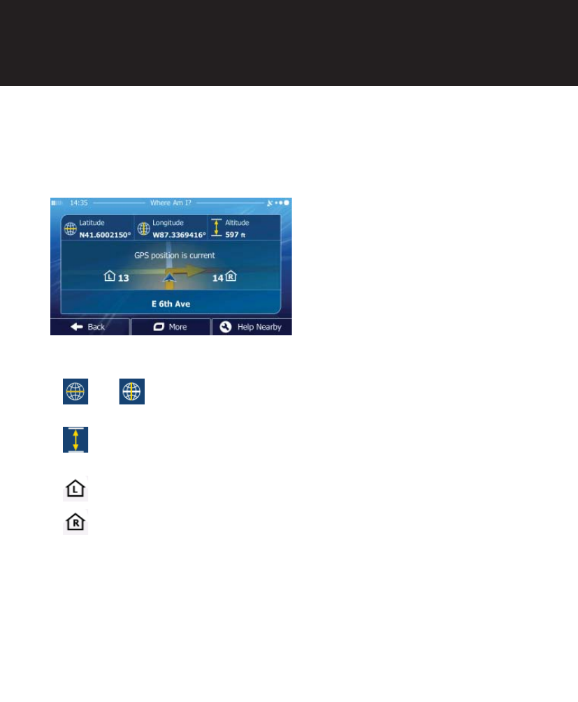 • Address details (when available) of the current position are also displayed at the