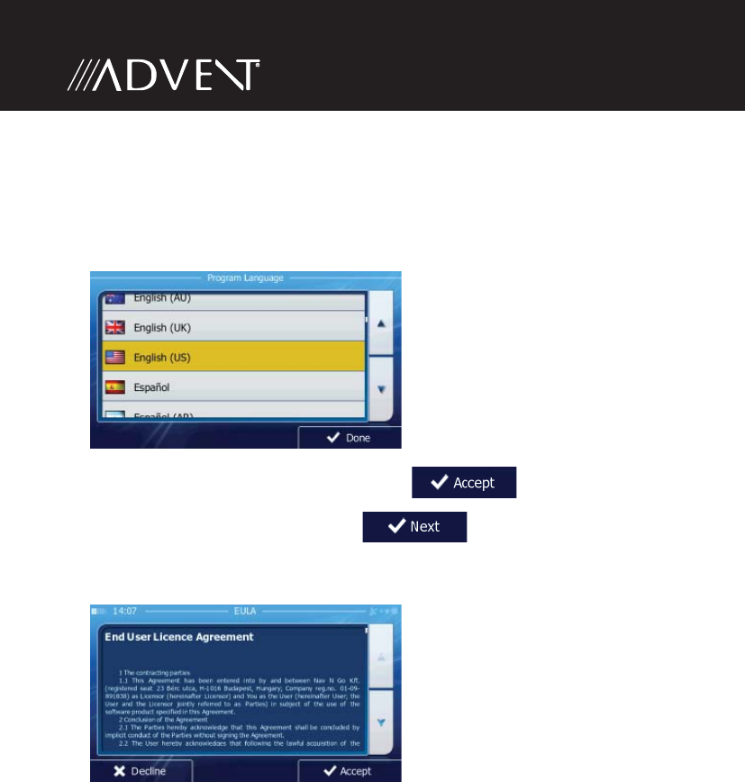 When using the navigation software for the ๎€„ rst time, an initial setup process