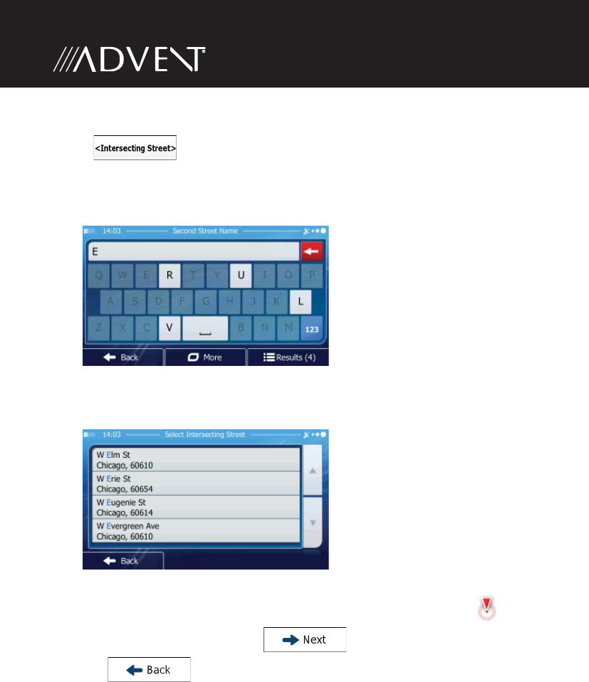 • If only a few intersecting streets exist, their list appears immediately.