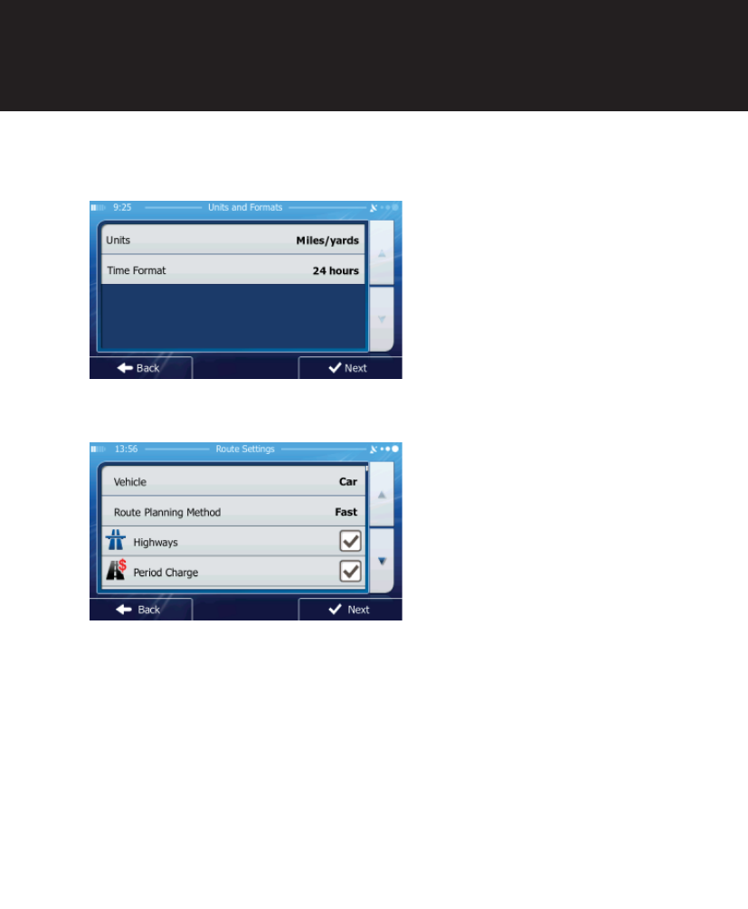 After the initial setup, the Navigation Menu appears and you can start using iGO