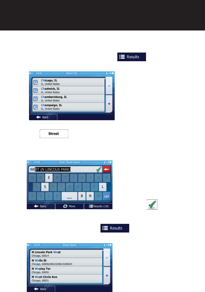 b. Start entering the street name on the keyboard.