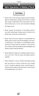 Safe Operation of Battery Pack WARNING • Never short-circuit a battery pack by either accidentally or intentionally bringing the terminals in contact with another metal object. That could result in burns, other bodily injury or a fire, and could also damage the battery pack. • Never expose the terminals of the battery pack to any other metal object. Always wrap it or place it in a plastic bag, whenever transporting it.