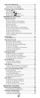 TABLE TABLE OF OF CONTENTS CONTENTS SAFETY INSTRUCTIONS ........................................ 7 SAFETY INFORMATION FOR WIRELESS HANDHELD PHONES ........................ 14 SAR INFORMATION ............................................... 17 SYSTEM CONFIGURATION ................................... 18 BATTERY INSTALLATION AND RECHARGING .. 19 To Attach the Battery Pack ..................................... 19 To Detach the Battery Pack ................................... 19 To Recharge the Battery ..........