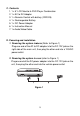 C. Contents 1. 1 x 5’’ LCD Monitor & DVD Player Combination 2. 1 x AC to DC Adapter 3. 1 x Remote Control with battery (CR2025) 4. 1 x Rechargeable Battery 5. 1 x DC Power Adapter 6. 1 x Instruction Manual 7. 1 x Audio/Video Cable D. Powering and installation 1. Powering the system indoors (Refer to Figure 1) Plug one end of the AC to DC adapter into the DC 12V jack on the right side of the main unit, then plug the other end into a 120VAC power outlet. 2.