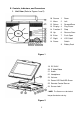E. Controls, Indicators, and Connectors 1. Unit View (Refer to Figures 1and 2) 10 Source 1 Down 11 Menu 2 Left 12 Return 3 Forward Scan 13 Display 4 Play/Pause 14 Function 5 Stop 15 Up 6 Reverse Scan 16 Enter 7 Push Open 17 Right 8 LCD Cutoff SCAN Switch 18 Power 9 Battery Pack Figure 1 19 DC IN 9V 20 S Video/Video 21 Audio 22 Headphone 26 23 Volume 24 Power LED Red/LED Green 25 Remote Control Sensor 26 Screen Lock * * NOTE: The Screen must be locked into position before closing.