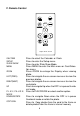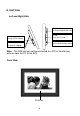 F. Remote Control M ENU Digital Photo Frame Press to select the Calendar or Clock. Press to enter the Setup menu. Press to enter Slide Show Mode. Press MENU to enter the Main menu or Card Selection menu. ZOOM Press ZOOM to enlarge the Display when viewing photo. LEFT(PREV) Press to navigate the on-screen menus or to view the previous photos. RIGHT(NEXT) Press to navigate the on-screen menus or to view the next photo. UP Press to navigate Up when the DPF is in pause thumbnail mode.