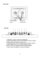 E. Unit View Left and Right Side SD/MMC/MS Slot Insert the SD/MMC/MS card CF Slot Insert the CF card Power On/Off Switch USB Slot DC 9V Plug the AC adaptor Insert a USB memory device Note: The USB slot can not be connected to a PC for transferring pictures from the PC to the DPF.