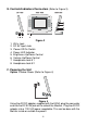 E. Controls/Indicators/Connectors (Refer to Figure 3) 1. 2. 3. 4. 5. 6. 7. 8. Figure 3 AV In Jack DC 9V Input Jack Power Off/On Switch Power LED Indicator Brightness Up/Down Control Volume Up/Down Control Headphone Jack # 1 Headphone Jack # 2 F. Powering the Unit Option 1 Indoor Power (Refer to Figure 4) Figure 4 Using the AC/DC adapter supplied with the EX50, plug the connector end into the DC 9V IN jack on the side of the Monitor. Plug the AC/DC adapter into a 110V AC power receptable.