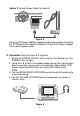C. Contents ITEM 1. 5.0" LCD Monitor VBPEX56 2. AC to DC Power Adapter 3. DC Power Adapter 4. 5.0" LCD Monitor Pouch 5. 1/8 to RCA A/V Adapter cable QTY. 1 1 1 1 1 D. Positioning the Monitor Option 1 Vehicle Headrest (Refer to Figure 1) Figure 1 Slide the Monitor into the pouch, feed the bottom piece of the Monitor into the long slot at the bottom of the pouch and attach the Velcro strap to fasten the Monitor in the pouch.