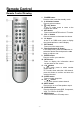 Remote Control Remote Control Drawing 1. POWER button Press to enter or exit the standby mode. 2. 0~9 Number buttons Press to select numbers. 3. LAST button In the TV mode, press to return to the channel last viewed. 4. MTS button Press to activate MTS function in TV mode. 5. VOL +/- button Press to increase or decrease the volume. 6. CC button In the TV or CVBS mode, press to display the closed captions or cancel display. 7. EXIT button Press to exit the setup menu. 8.