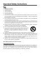 Important Safety Instructions Note: 1. 2. 3. 4. 5. 6. 7. Read these instructions. Keep these instructions. Heed all warnings. Follow all instructions. Do not use near water. Clean only with dry cloth. Do not block any ventilation openings. Maintain well ventilated conditions around the product. Do not put product on bed, sofa or anything that blocks ventilation. Install in accordance with the manufacturer’s instructions. 8.