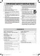 IMPORTANT SAFETY INSTRUCTIONS 1) 2) 3) 4) 5) 6) 7) Read these instructions. Keep these instructions. Heed all warnings. Follow all instructions. Do not use this apparatus near water. Clean only with a dry cloth. Do not block any ventilation openings. Install in accordance with the manufacturer’s instructions. 8) Do not install near any heat sources such as radiators, heat registers, stoves, or other apparatus (Including amplifiers) that produce heat.