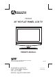 FPE2608 26” HD FLAT PANEL LCD TV OWNER'S MANUAL FOR ASSISTANCE CALL CUSTOMER SERVICE AT 1-800-645-4994 OR VISIT US AT WWW. AUDIOVOX.