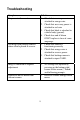 Troubleshooting Symptom No power to the monitor Solution 1. Check that reverse power is attached to orange wire. 2. Check that accessory power is attached to red wire 3. Check that black is attached to vehicle body (ground) 4. Check fuse and if blown ONLY replace is fuse of same amperage. 1. Check that camera is functioning correctly 2. Check that orange wire is attached to reverse power. 3. Check that backup camera is attached to input CAM1.