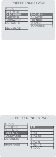 d. Select ‘PARENTAL’ using UP/DOWN, then press RIGHT