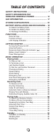 TABLE TABLE OF OF CONTENTS CONTENTS SAFETY INSTRUCTIONS ........................................ 7 SAFETY INFORMATION FOR WIRELESS HANDHELD PHONES ........................ 14 SAR INFORMATION ............................................... 17 SYSTEM CONFIGURATION ................................... 18 BATTERY INSTALLATION AND RECHARGING .. 19 To Attach the Battery Pack ..................................... 19 To Detach the Battery Pack ................................... 19 To Recharge the Battery ..........