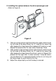 1.Installing the System onto the seat back in a car (Refer to Figure 2) Seat Standoff Figure 2 1). Take one of the supplied straps from the carrier bag. Connect the latch to one of the upper metal rings on the mounting bag. Connect the “S” hook to the other upper metal ring and place the loop over the headrest. Adjust the strap until the bag is firmly secured. 2). Take another strap from the carrier bag, and connect the latch to the lower metal ring on the left side of the bag.