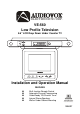 ® ELECTRONICS CORP. VE-560 Low Profile Television 5.6” LCD Drop Down Under Counter TV OPEN POWER TIME SET F TIME ADJUST G SENSOR ® ELECTRO NI CS CO RP . F TV/AV1/AV2 AUTO PROG PICTURE VOLUME G TV CHANNEL Installation and Operation Manual FEATURES n n n n n Multi-function Remote Control Automatic Channel Programming Cable Ready 125 Channel Tuner Internal Stereo Speakers Wall or Under Cabinet Mounting F o r C u s tom e r S e rv ic e V is it O u r W e b s ite A t 999.audiovox.