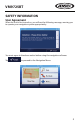 VM9725BT SAFETY INFORMATION User Agreement When the unit is first turned on, you will see the following message, warning you to operate your navigation system appropriately: You must agree to the above notice before using the navigation software. Tap to proceed to the Navigation Menu.