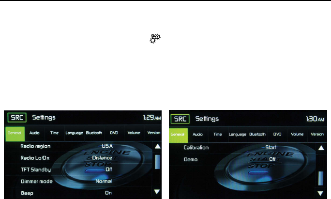 To access System Settings, touch the icon on the Main Menu screen. There are