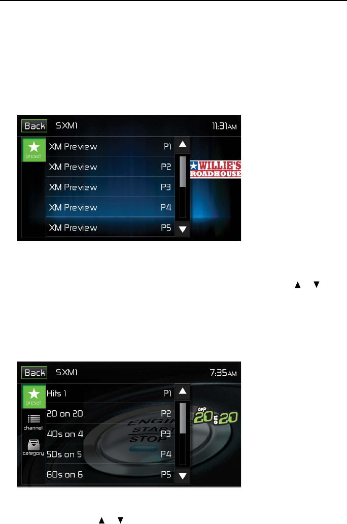 3. Touch a channel on the preset channel list to select the corresponding stored