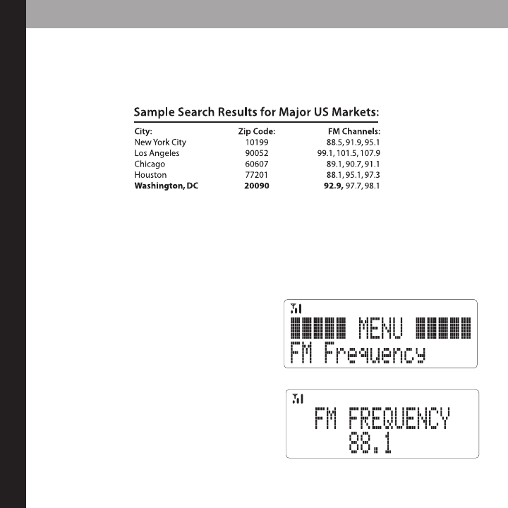 Note: Your XM radio may not modulate on each of the frequencies shown on the