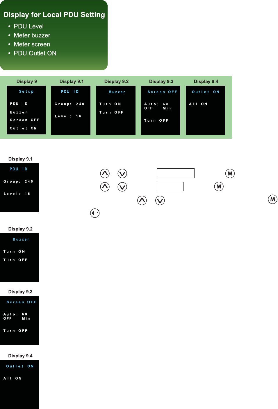 Step 3 - In display 9.1, Press the & button to select PDU level no. & press to confi rm