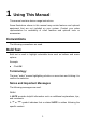 1 Using This Manual This manual contains device usage instructions. Some illustrations shown in this manual may contain features and optional equipment that are not included on your system. Contact your sales representative for availability of other features and optional tools or accessories. Conventions The following conventions are used. Bold Text Bold text is used to highlight selectable items such as buttons and menu options. Example: Click OK.