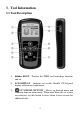 3. Tool Information 3.1 Tool Description 1) Rubber BOOT – Protects the TPMS tool from drop, abrasion, and etc. 2) LCD DISPLAY – Indicates test results. Backlit 128*64 pixel display with contrast adjustment. 3) UP SCROLL BUTTON – Moves up through menu and submenu items in menu mode. When more than one set of data are retrieved, use this button to move down to next screens for additional data.
