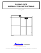 ____________________________________________________________ 2. Bolt the trolley channel header to the (3) gate posts with the hardware provided. Filler Panel Gate Trolley Unistrut Track Mount Gate Post Gate Panel 3. If not already attached, bolt the (2) trolleys to the top of the panel using the1/4” eye bolt and hex nuts supplied. You will use three hex nuts on the eye bolt. One is installed on the eye bolt first, then the eye bolt is installed through the trolley and panel.