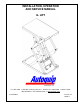 INSTALLATION, OPERATION AND SERVICE MANUAL Q- LIFT P.O. Box 1058 • 1058 West Industrial Avenue • Guthrie, OK 73044-1058 • 888-811-9876 405-282-5200 • FAX: 405-282-3302 • www.autoquip.com Item #830QL Version 2.