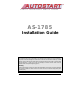 MANUAL TRANSMISSION REMOTE STARTER AS-1785 Installation Guide Notice The manufacturer will accept no responsibility for any electrical damage resulting from improper installation of the product, be that either damage to the vehicle itself or to the Unit. This Unit must be installed by a certified technician using all safety devices supplied. Please note that this guide has been written for properly trained Autostart technicians: a certain level of skills and knowledge is therefore assumed.