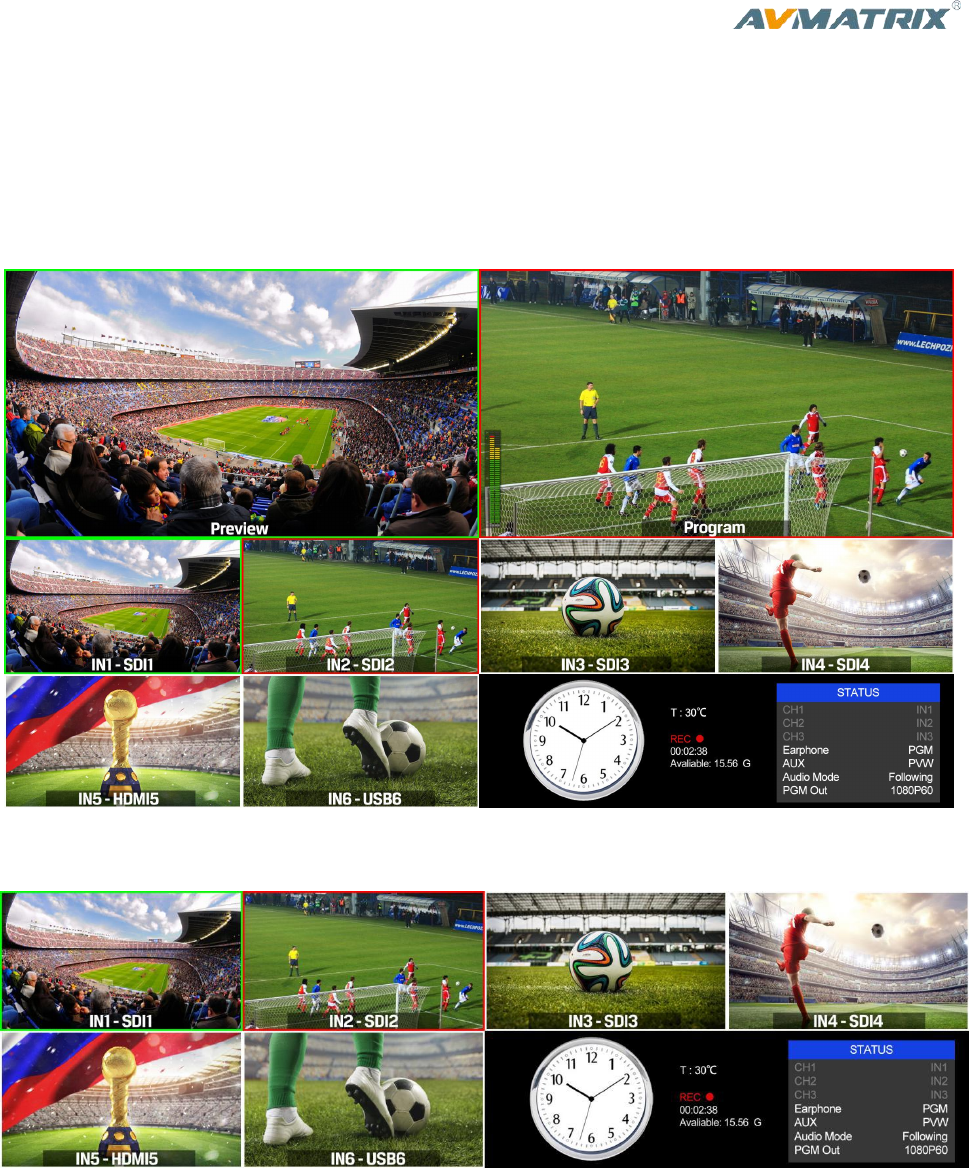 1) PGM and PVW as Preview and Program displayed as following image. The level meter of PGM audio