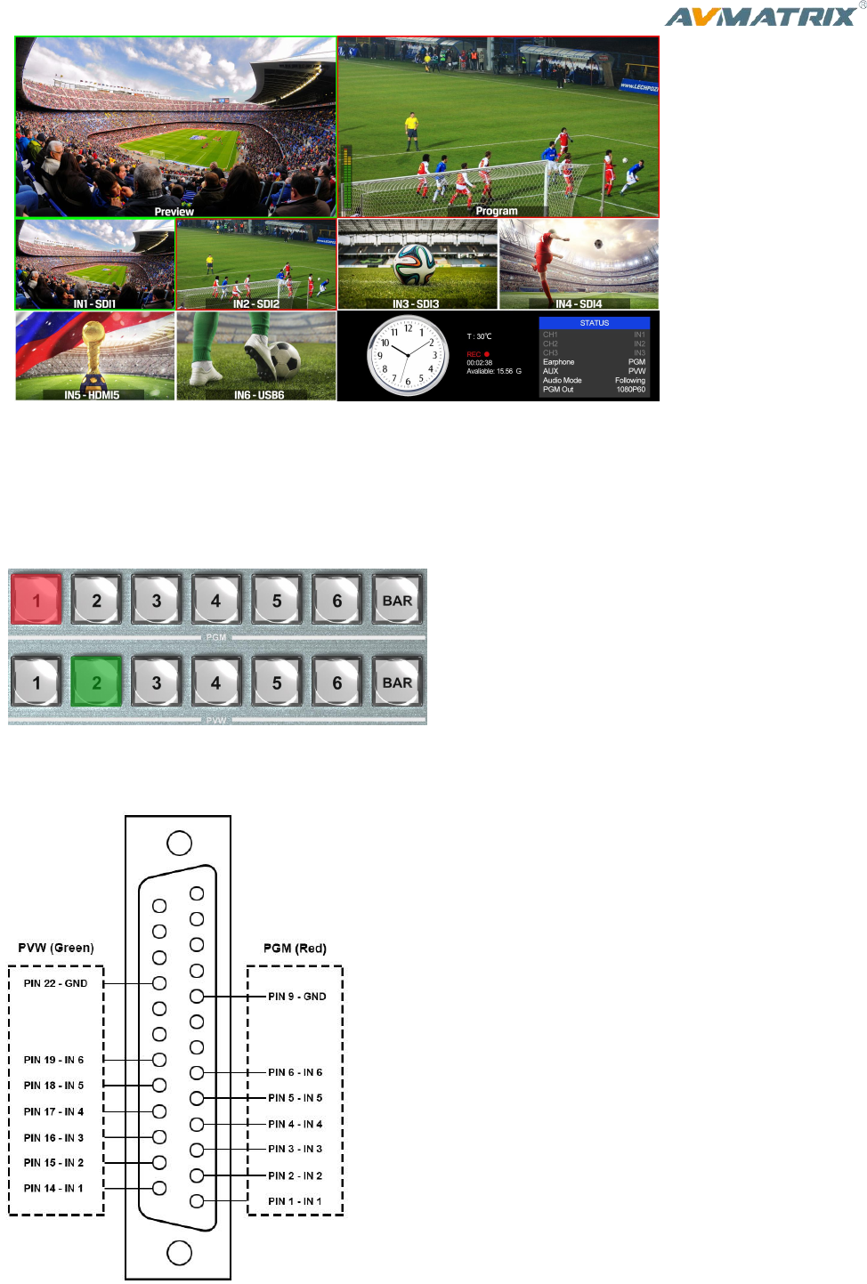PVS0615 is equipped with a 25-pin GPIO interface for tally, the pin outputs are defined as follows: