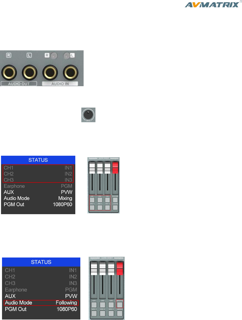 Rotary and press the knob button to set audio mode as mixing.