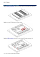 Quick Reference Guide Step 3-2. Insert the HDD into the bracket and fasten 4 screws. Step 3-3. Insert the cable to connect the HDD and the SATA connecter. Note: Only LPC-1503 support IDE connector. SATA Connector IDE Connector SATA cable SATA wire Step 3-4. SATA HDD Installation: By default, the SATA cables had been inserted to the according connectors. Just connect to SATA HDD with the two cables.