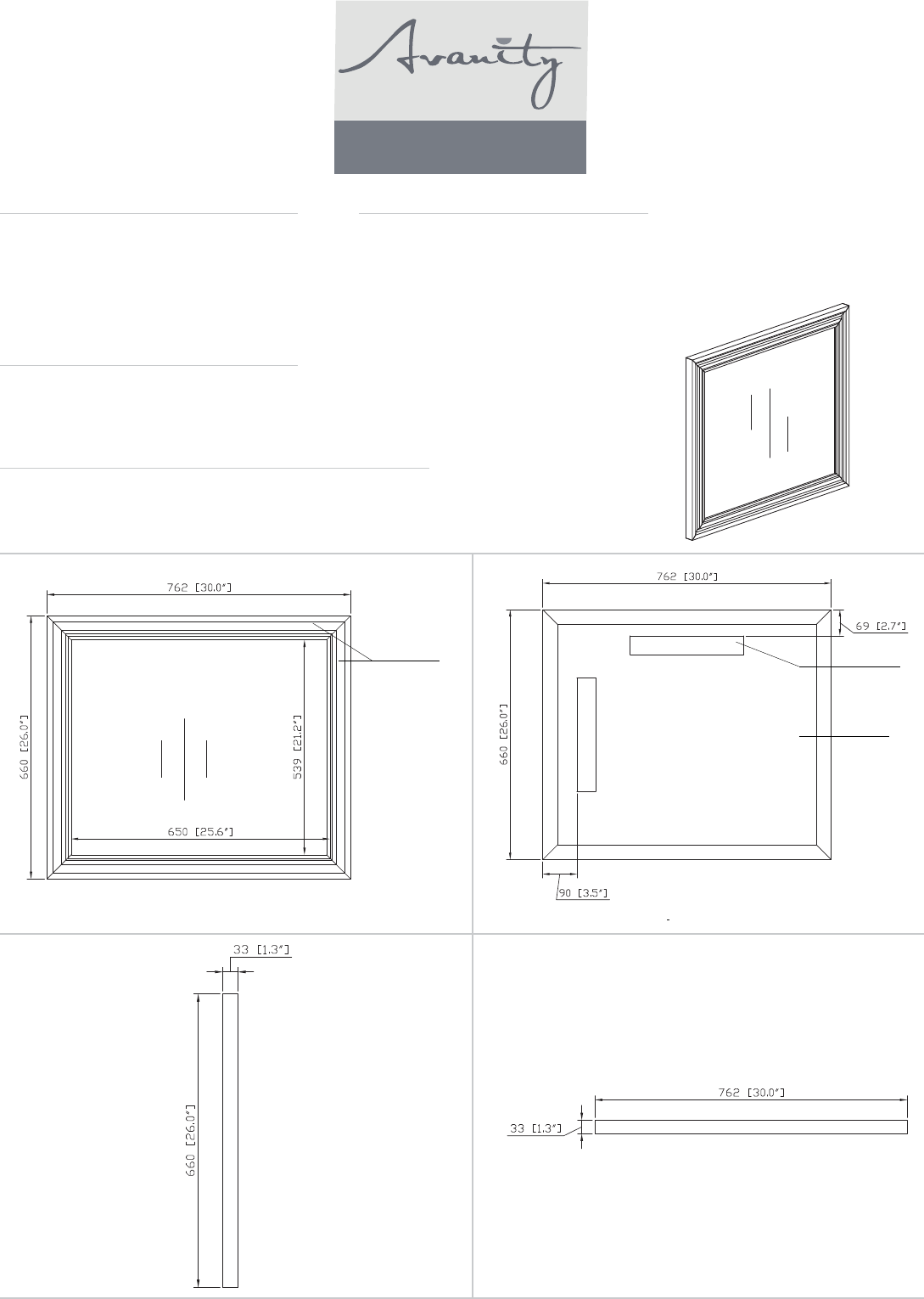 • 30W x 1.3D x 26H (inches) | 762 x 33x 660mm