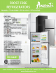 FROST FREE 10.1 Cu, Ft. Ca Fresh Food: 7. Freezer: 2. Top Mounted Section Reversible Adjustable/Removable Glass Shelves in Refrigerator Electronic aperture Control Interior Light Door Stepper Door Rack Holds 2 Liter Bottles Clear View Storage Crisper with Glass Lid Leveling Legs Full Width Door Bins Unit Dimensions: : BO HX 215" Wx 27.25" Carton Dimensions 2 Hx2275"Wx3925°D 4 EE ht. 120 Lbs.